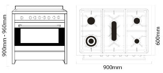 Parmco Freestanding Gas Stove 90cm 4 Function 107L with Gas Cooktop Stainless Steel
