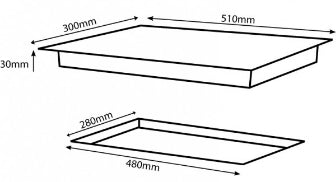 2 burner hob with automatic ignition, flame failure protection, cast iron trivets and knobs to match, cut-out size W x D (mm): 285 x 485, appliance size W x D x H (mm): 300 x 510 x 30, 7 year warranty