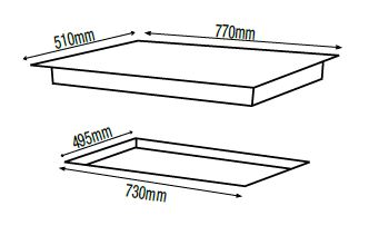 Recessed 5 burner hob including powerful 5.1KW wok burner, automatic ignition, flame failure protection, cast iron trivets and stainless steel knobs, cut-out size W x D (mm): 730 x 495, appliance size W x D (mm): 770 x 510, 7 year warranty