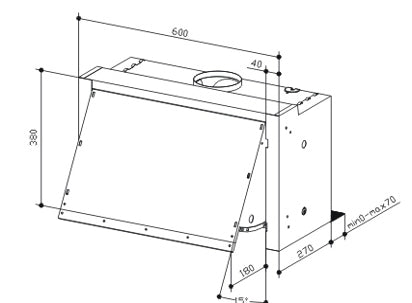 Stepped back style rangehood, 3 speed settings, 450m3 per hour air flow, full width removable grat filters, LED lights, slide controls, 64dB noise level, appliance size W 600 mm x D 270 mm x H 380 mm, 7 year warranty