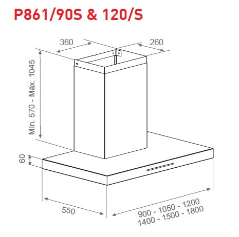 4 Speeds, 1200m3/hr Maximum extraction, 46dBA Maximum noise level, Clean-Air Function, Stainless filters, LED Lights, Requires 150mm ducting, Clean-Air Function, LED Lights, Stainless Filters