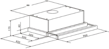 Telescopic consealed rangehood with air movement up to 440m³/hr, slider control 3 speed setting, easy to remove and clean aluminium filters, LED lights and 125mm ducting outlet.