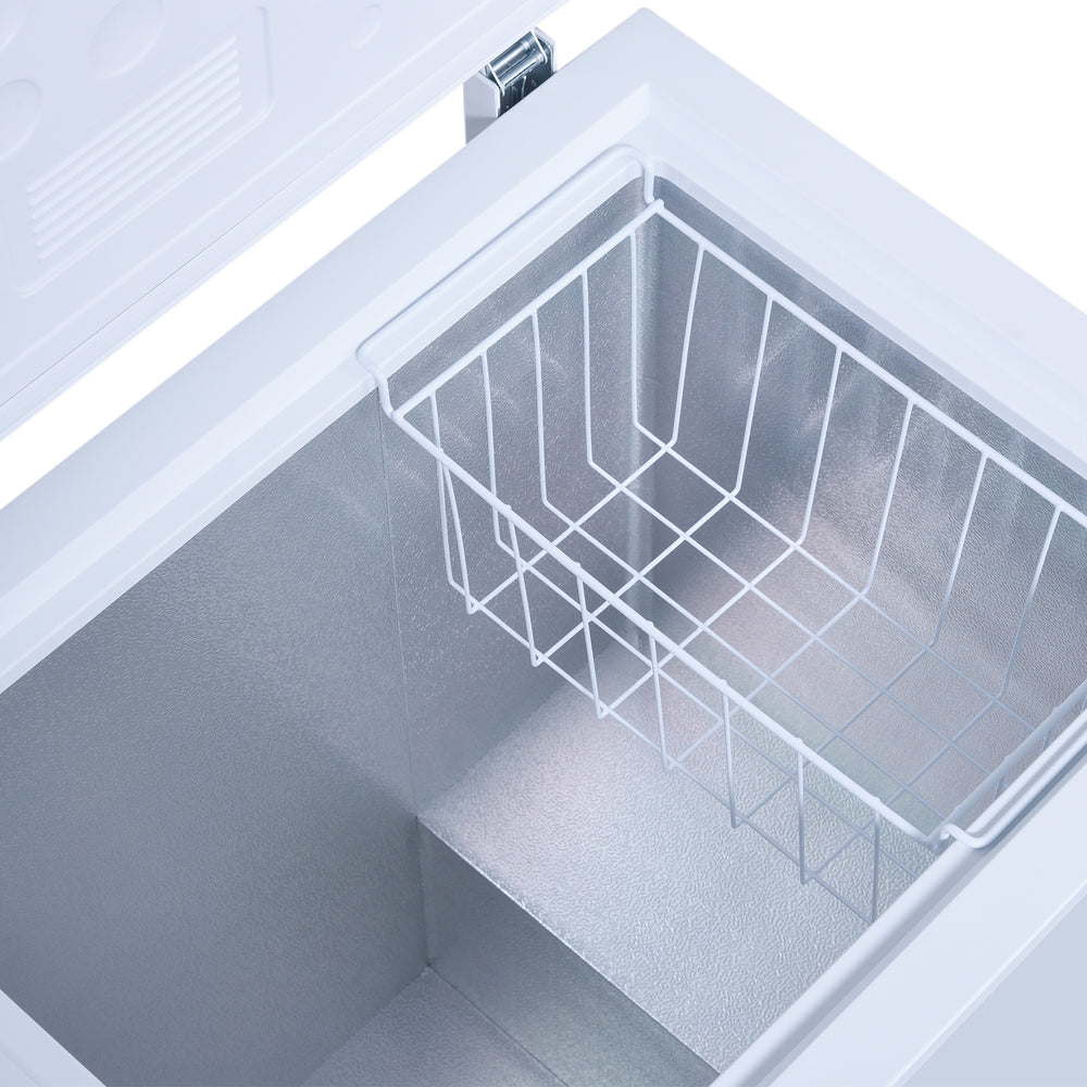 Roller wheel on one end, mechanical temperature control, direct cooling, 42db noise level, water disposal device, wire basket, rollers, adjustable legs, 3 star energy rating, appliance size W x D x H (mm): 705 x 560 x 850, 7 year warranty