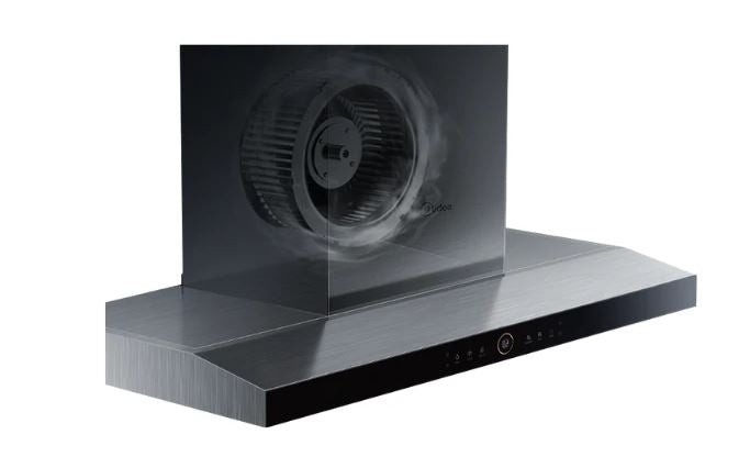 Midea T Model Rangehood 90cm 1,800m3/h max. extraction Stainless Steel/ Black Glass with Gesture Control and Steam Wash
