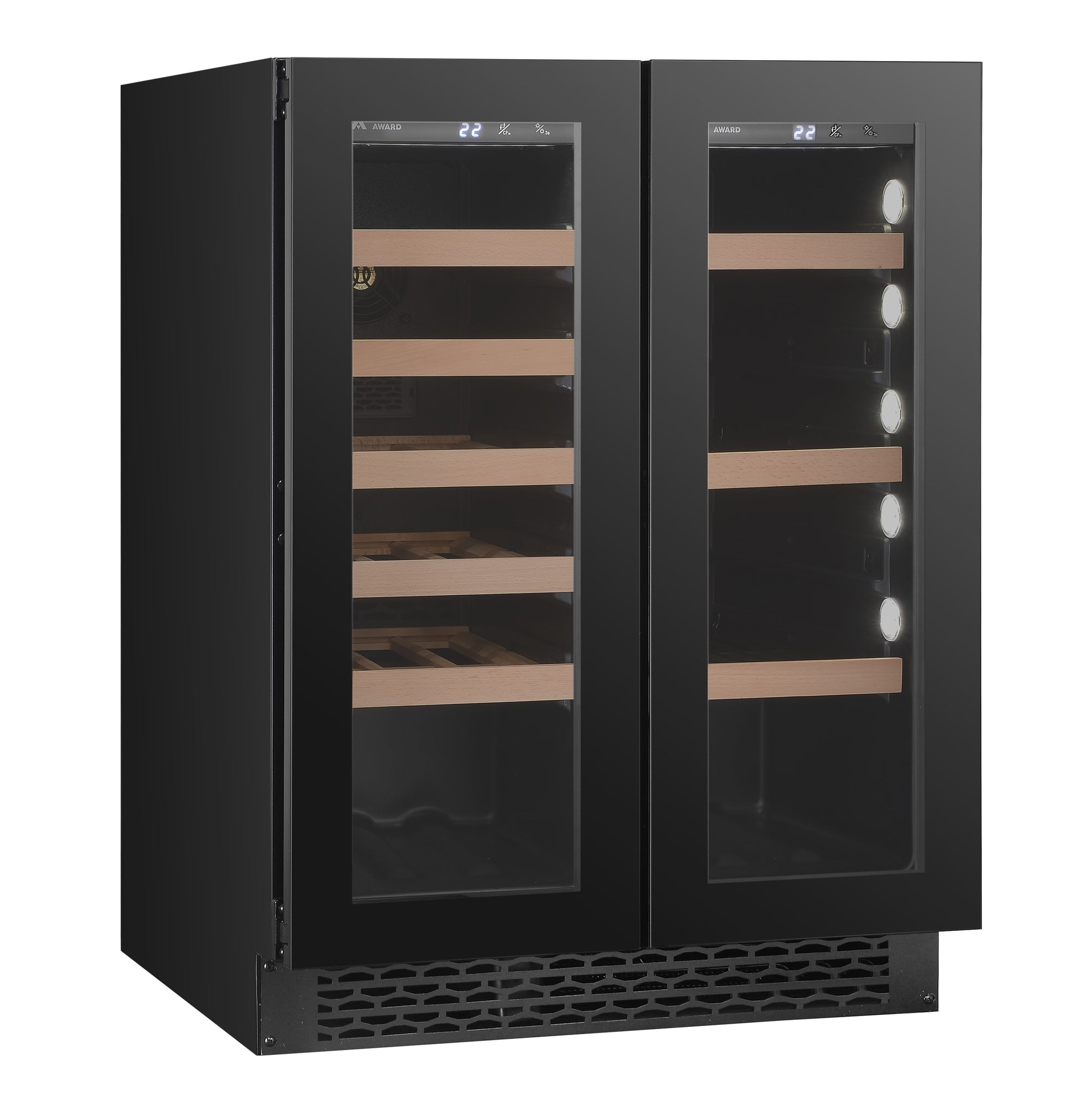 Award Underbench Wine and Beverage Fridge Dual Door 18 Bottle Capacity + 60 Litres Black Glass