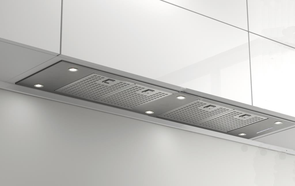4 Speeds, 1200m3/hr Maximum extraction, Very low noise with motor mounted in ceiling space, Clean-Air Function, Stainless filters, LED Lights, Requires 150mm ducting (max.effective length 10m), Rangehood outlet may be configured for rear exit - please enquire, Clean-Air Function, LED Lights, Remote Motor, Stainless Filters, cut-out size W x D (mm): 920 x 257, appliance size W x D (mm): 950 x 276, 24 months warranty
