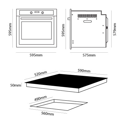 Oven features: 10 function, 80L usable capacity, digital timer, knob control, triple glazed glass, catalytic liners; Cooktop features: 9 power settings, 4 heating zones, touch control, easy clean, child lock, digital timer, heat indicators, cut-out size W x D: 560 x 490, 7 year warranty