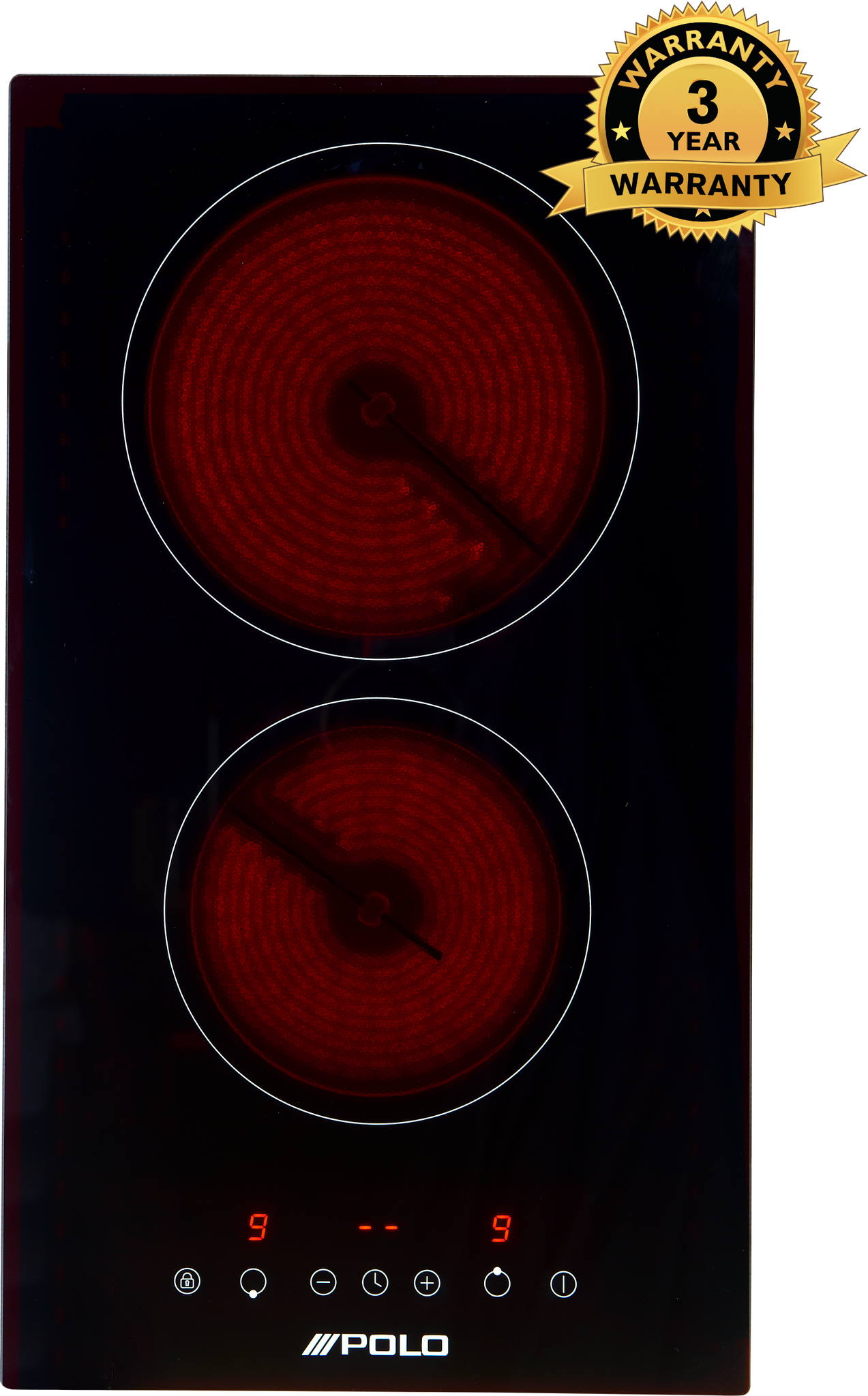 **3 YEAR WARRANTY** Polo Ceramic Cooktop 30cm 2 Burner Black Glass